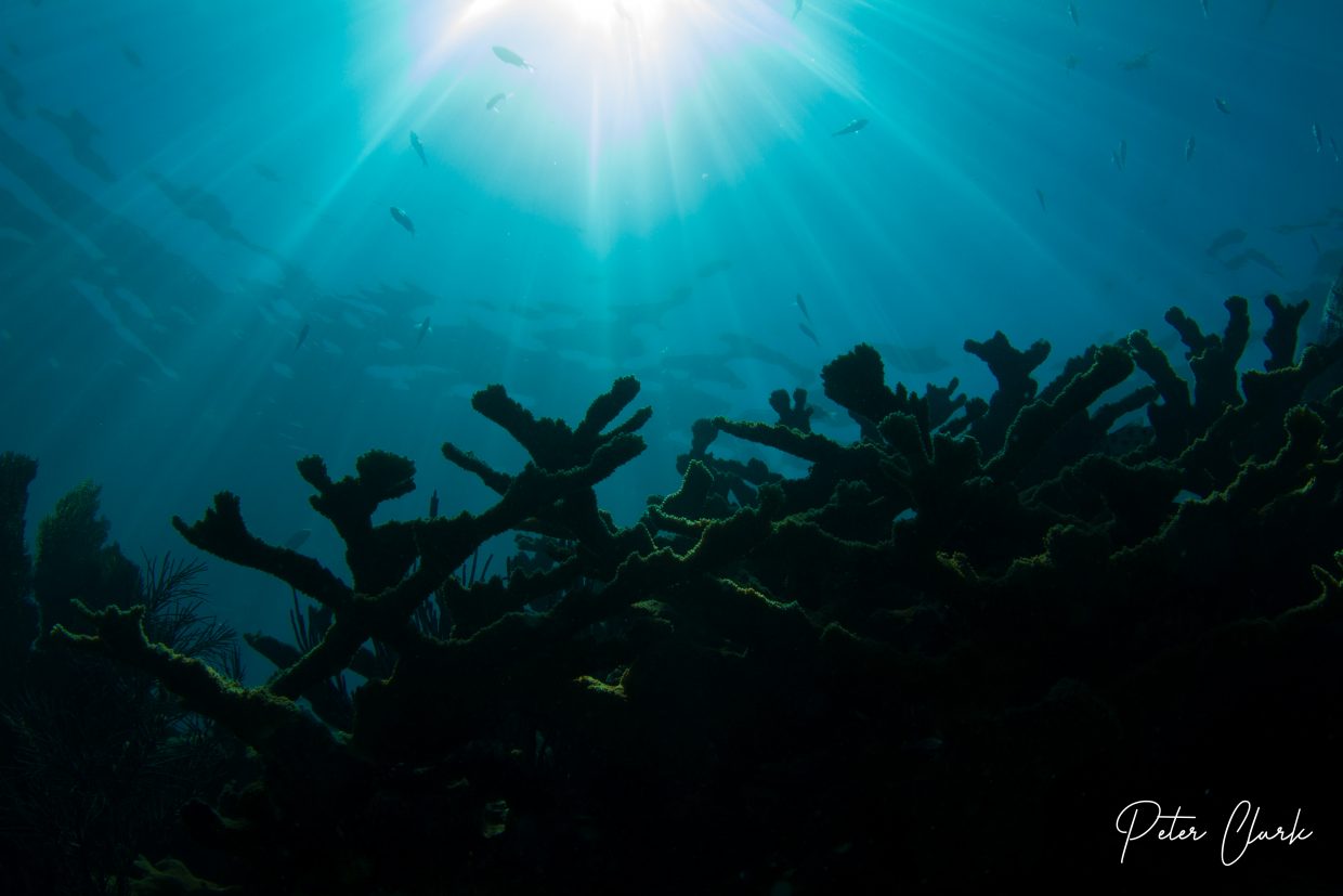 Sun Over Endangered Elkhorn Coral on Coral Reef at Looe Key, Florida Keys